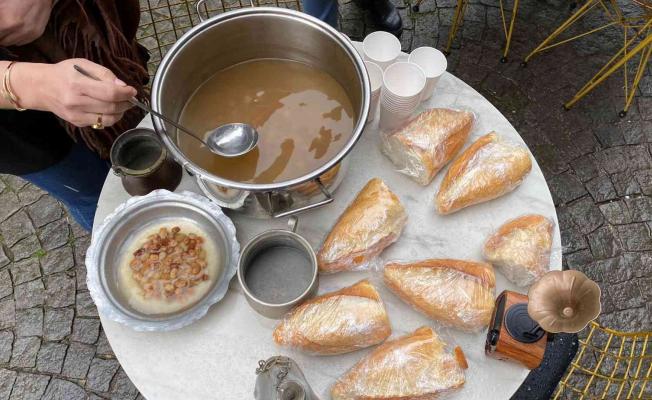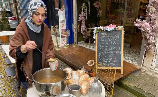 Üsküdar Kuzguncuk’ta bir kafe işletmecisi, 18 Mart Çanakkale Zaferi ve Şehitleri Anma Günü nedeniyle vatandaşlara hoşaf ve ekmek dağıttı.