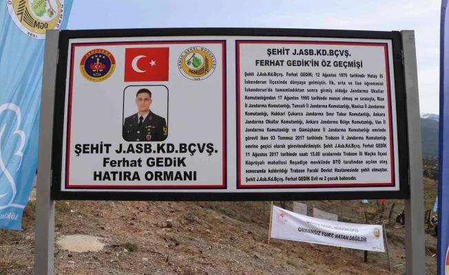 Hatay’ın İskenderun ilçesinde, Eren Bülbül’ü korurken şehit olan Jandarma Astsubay Kıdemli Başçavuş Ferhat Gedik Hatıra Ormanına fidan dikimi gerçekleştirildi. Törende konuşan Vali Rahmi Doğan,”yanan bütün alanlar orman teşkilatımız tarafından bakıldı ve yanan alanların 3 katı kadar ormanlarımız fidanla buluşturuldu” dedi.