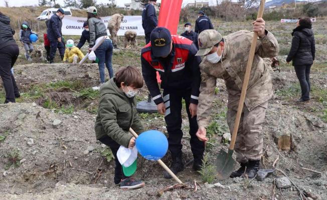 İskenderun Akarca mahallesinde Jandarma Astsubay Kıdemli Başçavuş Ferhat Gedik Hatıra Ormanında yangında zarar gören ormanlık alanda fidan dikimi yapıldı.