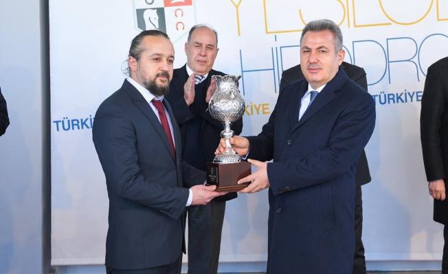 Yeşiloba Hipodromu’ndaki koşuyu birincilikle tamamlayan 3 numaralı at ‘Bay Emir’in sahibi Ahmet Korkmaz’a kupayı takdim eden Vali Dr. Süleyman Elban, Jokey Mehmet Akyavuz’u da tebrik edip başarılarının devamını diledi.
