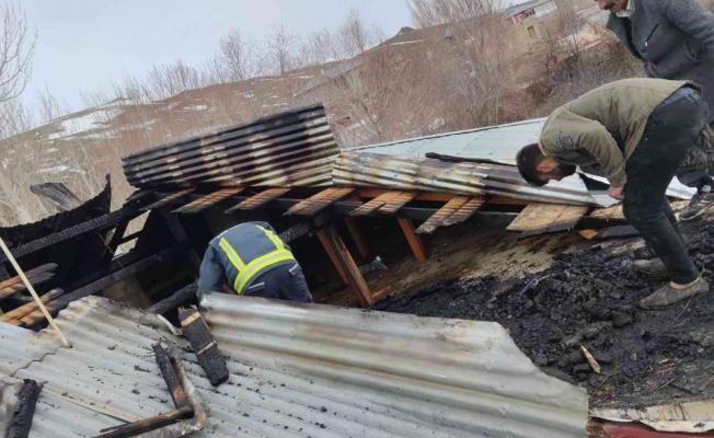 Van’ın Tuşba ilçesinde çıkan yangında bir evin çatısı hasar gördü.