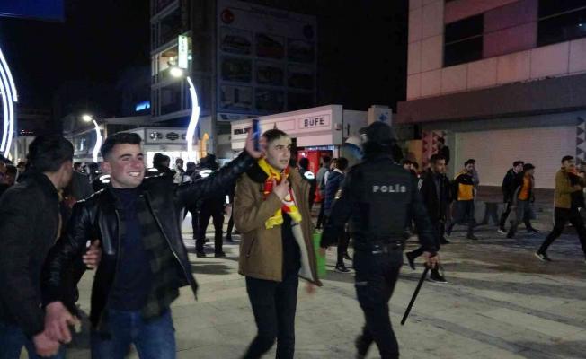 Spor Toto Süper Lig’in 29. hafta kapanış maçında Galatasaray, Nef Stadyumu’nda Beşiktaş’ı konuk etti. Galatasaray’ın 2-1 galibiyetiyle biten mücadelenin ardından Vanlı taraftarlar sevinç gösterisinde bulundu. Kentin en işlek caddeleri olan Cumhuriyet ve Maraş caddesinde sevinç gösterisinde bulunan taraftarlar arasında kısa süreli gerginlik yaşandı.