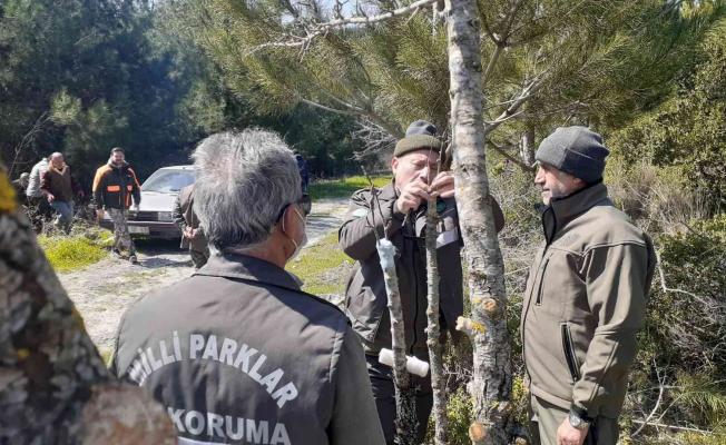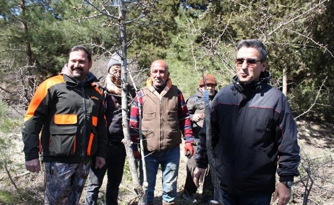 Aydın’ın Kuşadası ilçesinde yabani hayvanların yem sıkıntısı yaşaması için verimi olmayan yabani meyve ağaçlarında aşılama çalışması yapıldı.
