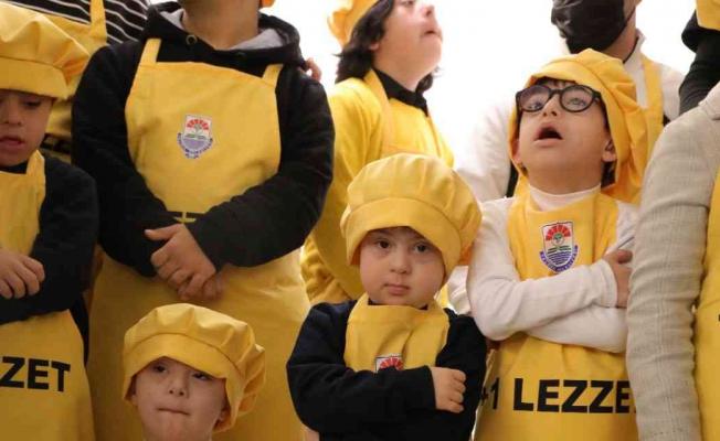 Yalova’da down sendromlu çocuklar aşçı önlüklerini giyerek mutfakta hünerlerini sergiledi.