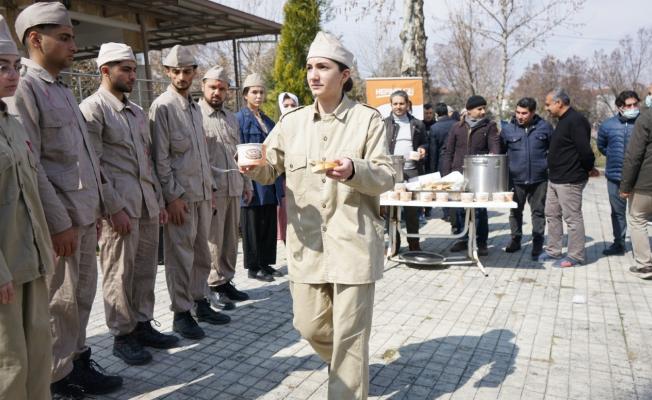 Arpa ekmeği ve hoşaf dağıtımı sırasında Yeşilyurt Belediyesi Kültür ve Sosyal İşler Müdürlüğüne bağlı genç tiyatrocular tarafından Çanakkale Zaferini anlatan gösteriler sergilendi.