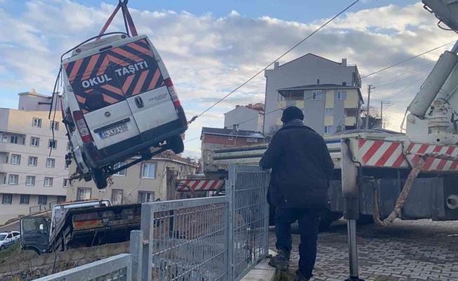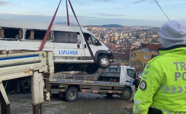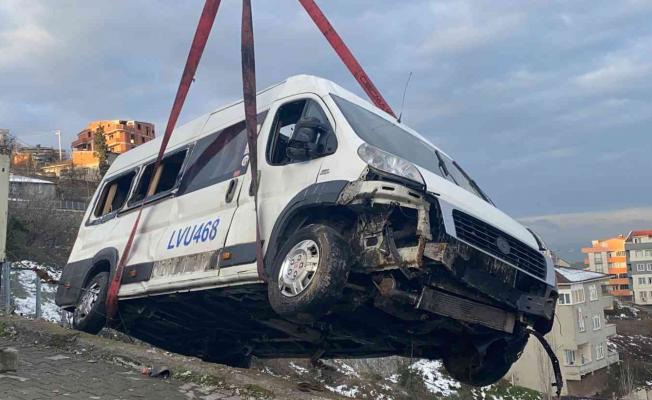 Sürücünün hayati tehlikesinin bulunmadığı öğrenilirken, kazaya karışan minibüs vinç yardımıyla çekiciye yüklendi.