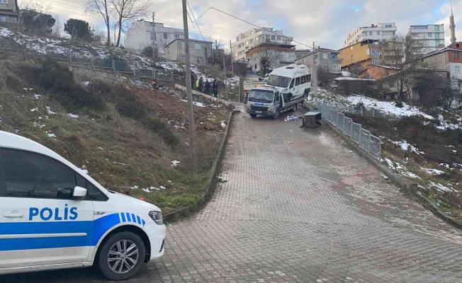 Kocaeli’nin Gebze ilçesinde yokuş aşağıya inerken yoldan çıkan servis minibüsü, yoldan çıkarak takla attı. Kaza sonrasında minibüsün sürücüsü yaralandı.