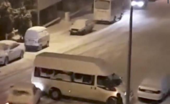 Cep telefonu kameralarına yansıyan görüntülerde ise, bir otomobilin yoldan çıkamayan minibüse çarpma anı yer alıyor.