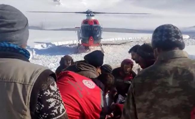 Yolu kapanan mezradaki hasta için ambulans helikopter havalandı