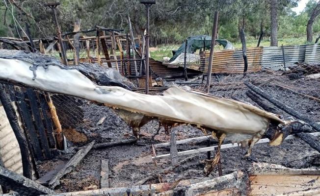 Antalya Büyükşehir Belediyesi Manavgat Birimine bağlı itfaiye ekiplerince söndürülen yangında herhangi bir can kaybı yaşanmazken, ağıl ve çadır kullanılamaz hale geldi.