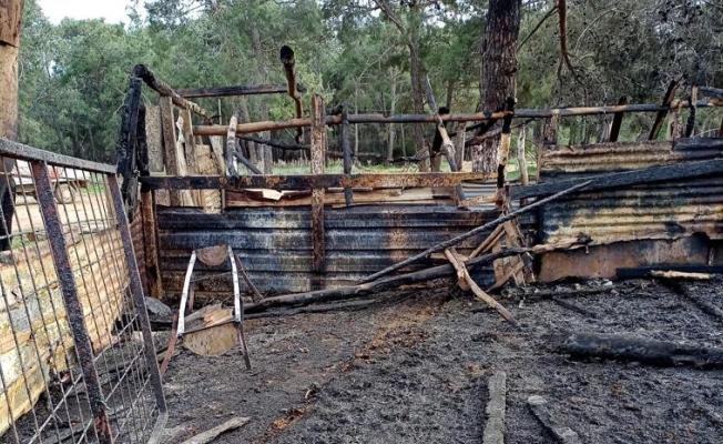 Yangın şiddetli rüzgar nedeniyle kısa sürede yayılırken, alevleri görüp olay yerine gelen vatandaşlar ağılda bulunan koyun ve kuzuları yangın bölgesinden uzaklaştırdı.