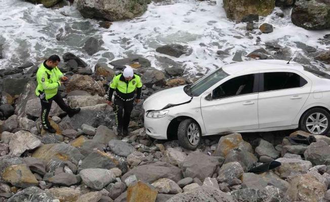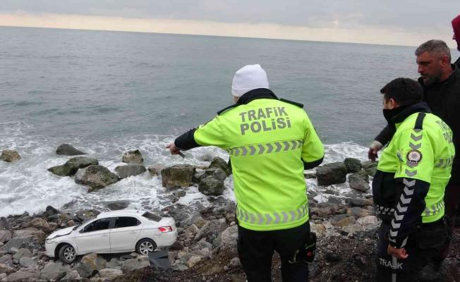 Zonguldak’ta yoldan çıkarak sahil kenarındaki kayalık alan uçan aracın sürücüsü yaralandı.